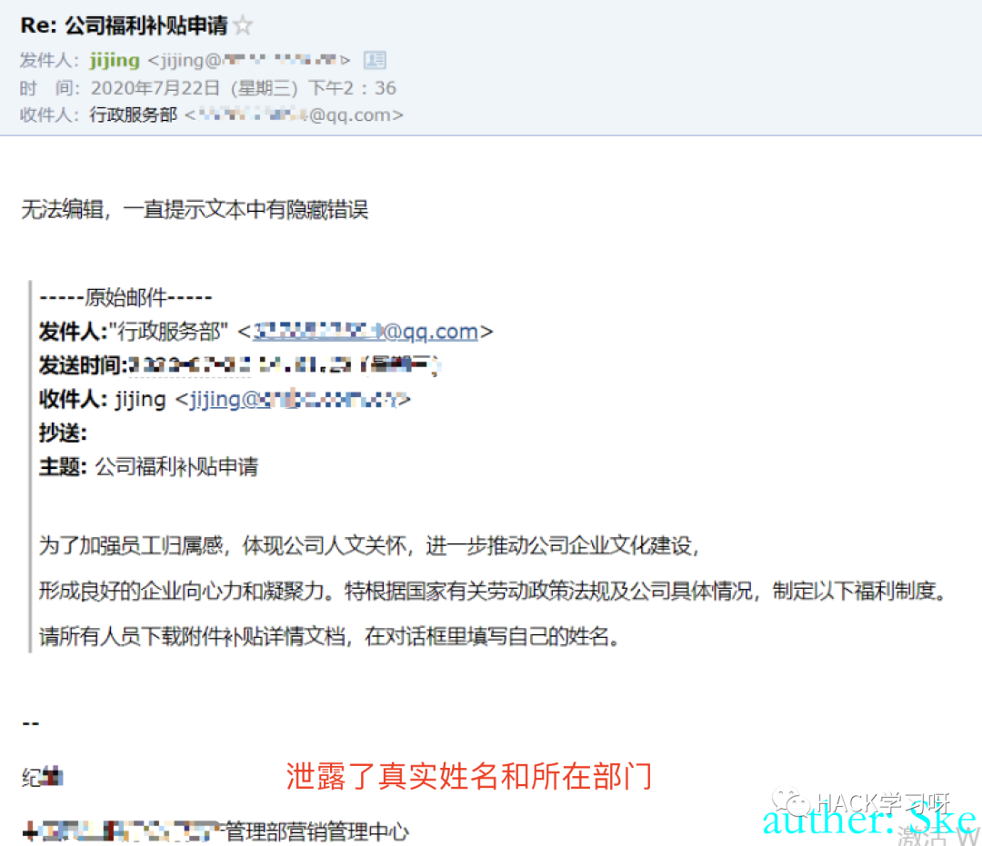 使用目标员工的邮箱发送马,不用考虑邮件网关导致发不进去
