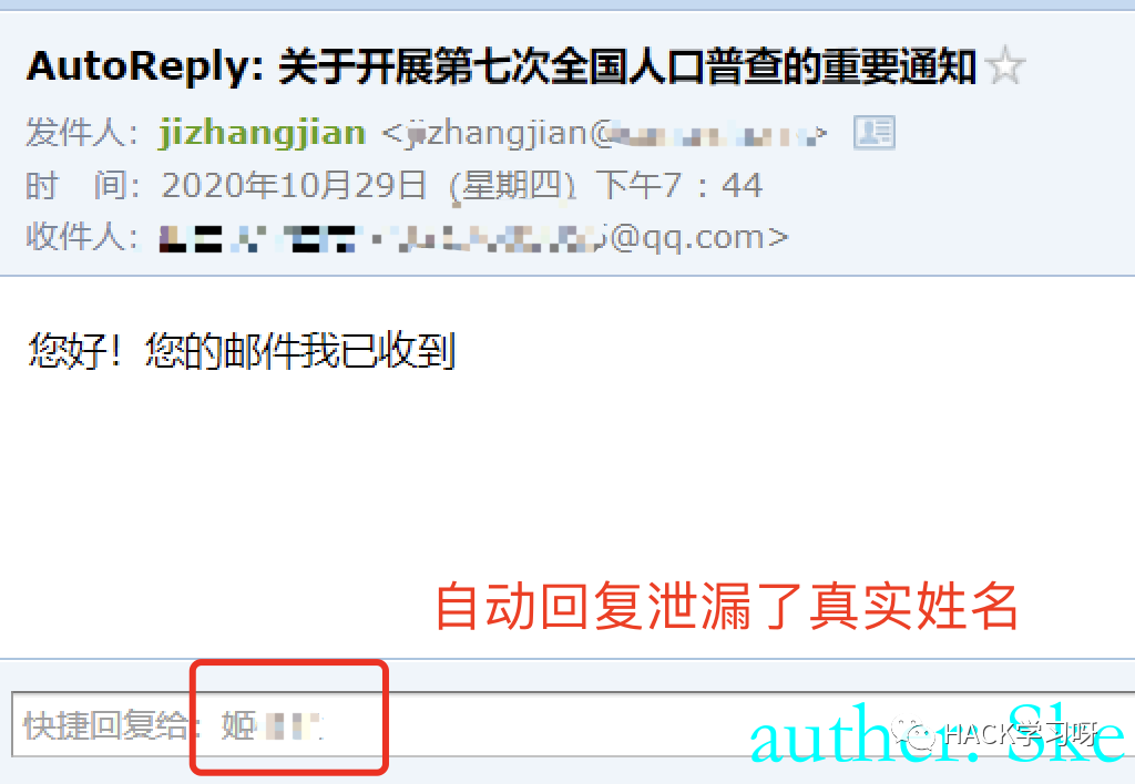 通过qq邮箱发送,还有一个好处,就是有些用户会设置自动回复或者回复了我们的邮件,那么这时候就可以获取到该用户的一些信息。