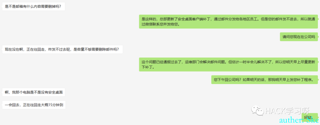 这里我是调查了他们员工都是用了一种安全桌面客户端,所以我就伪装自己是公司的技术部门,让他更新补丁,于是将马发送给他后,不一会儿就上线到CS了。