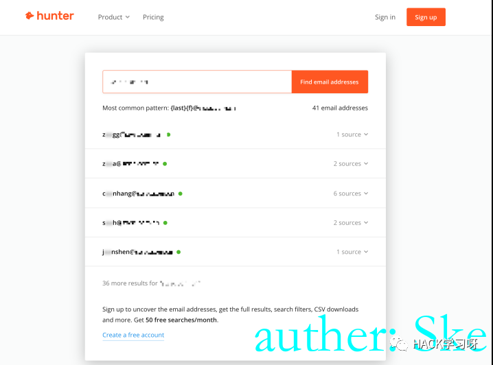 python3 theHarvester.py -d xxx.com -b all微匹:http://www.veryvp.com/hunter: https://hunter.io/search/domain.comskymem: https://www.skymem.info/