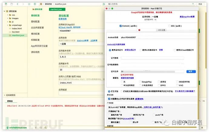 可以看到后门APP的其实是用JS写的H5应用,犯罪团伙通过使用HBuilderX