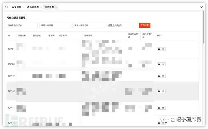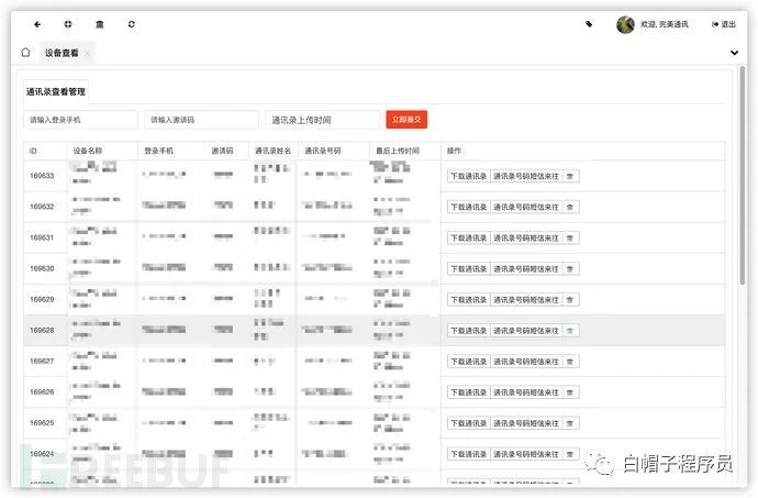 以上代码实现对受害者上传的通信录进行解析并将其储存进数据库.逻辑比较简单,就是用=等号分割通讯录联系人信息,每个联系人信息用|分隔开联系人姓名和手机号码。然后插入数据库中。