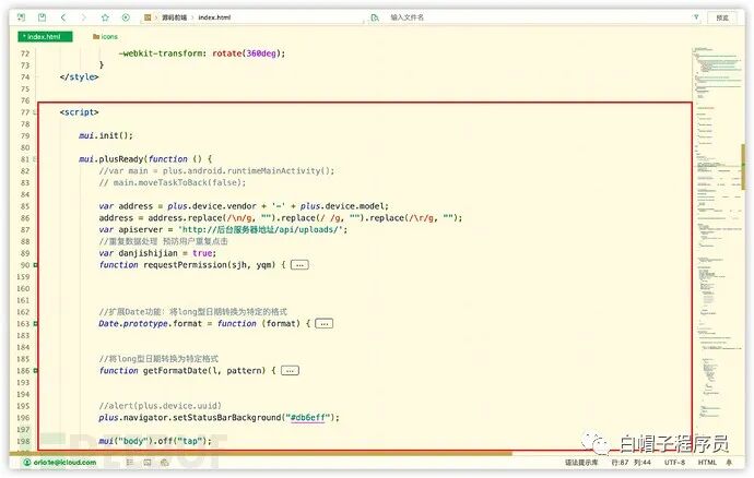 犯罪分子通过后门APP窃取受害者的通讯录、短信、手机相册等隐私信息。在研究后门APP的源代码开始时笔者发现,实际上这个所谓的“后门”APP只是用JS写的H5应用。也并不具有“后门”的完全功能、只有上传通讯录、短信、相册、位置等信息的能力。