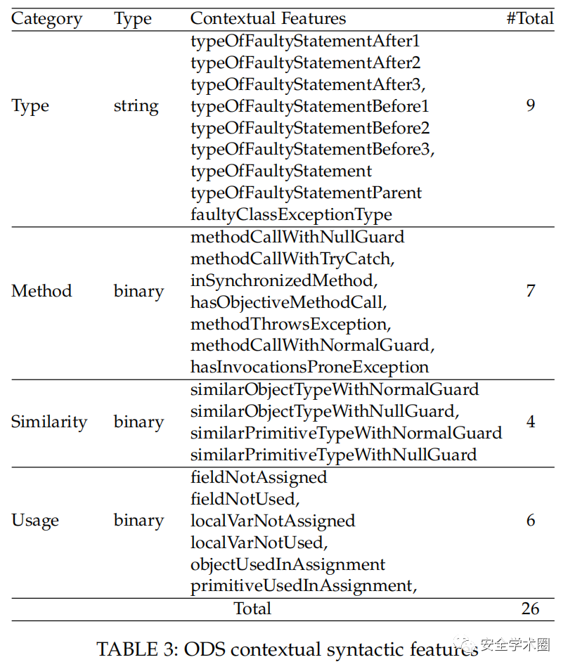 上下文句法特征: 表3给出了ODS中考虑的26个上下文语法特征。