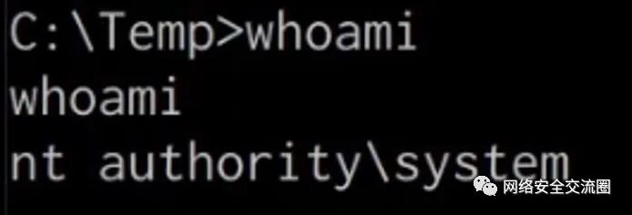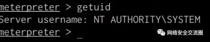 impersate_token“NT AUTHORITY\SYSTEM”9、现在,我们可以通过在meterpreter中运行以下命令来验证我们已经提升了权限: