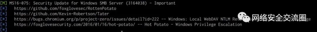 ./windows-exploit-suggester.py --database <DATABASE.XLSX> --systeminfo <SYSTEMINFO.TXT>2、对MS 16 -075漏洞的研究揭示了一个Metasploit模块,它可以自动执行令牌模拟攻击。