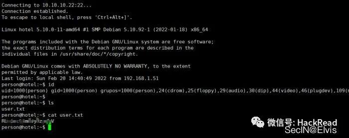 在之前的信息收集过程中,靶机开放了22端口,且刚刚找到了一个person用户