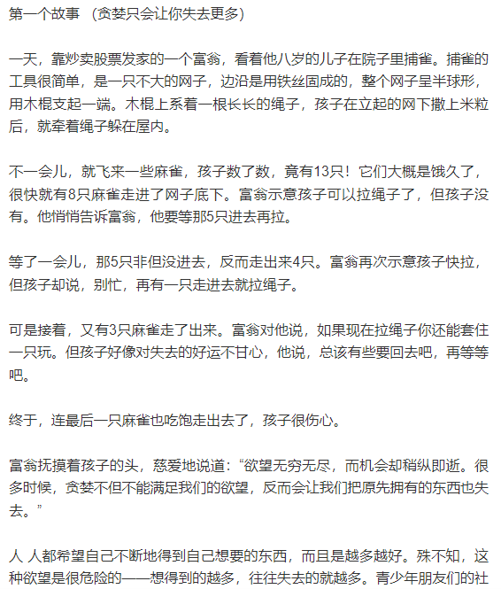 第二是克服贪婪,每个人都知道贪婪不好,但大多数人不能放弃贪婪。