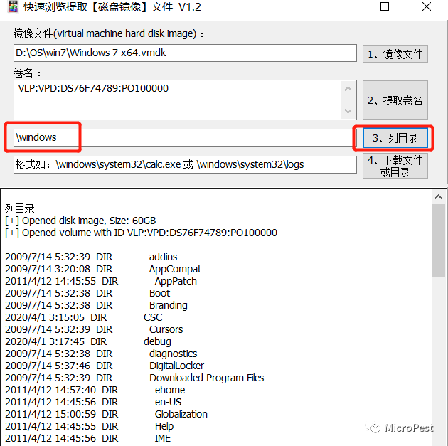 想起去年好像写过一个“快速浏览提取虚拟机磁盘文件”的工具(没什么技术含量),界面如下: