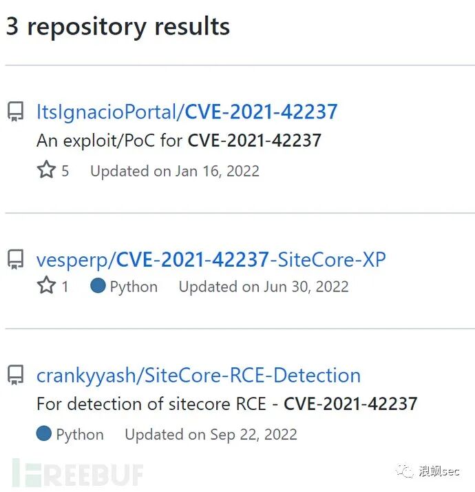 网上只找到一个CVE-2021-42237(Sitecore XP远程代码执行漏洞),找个POC试试: