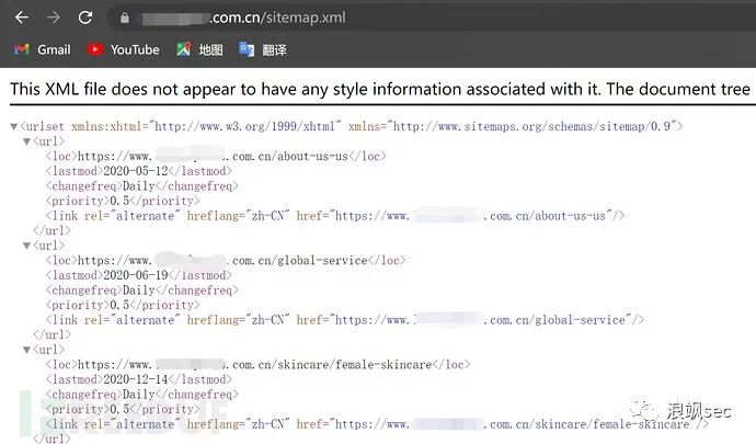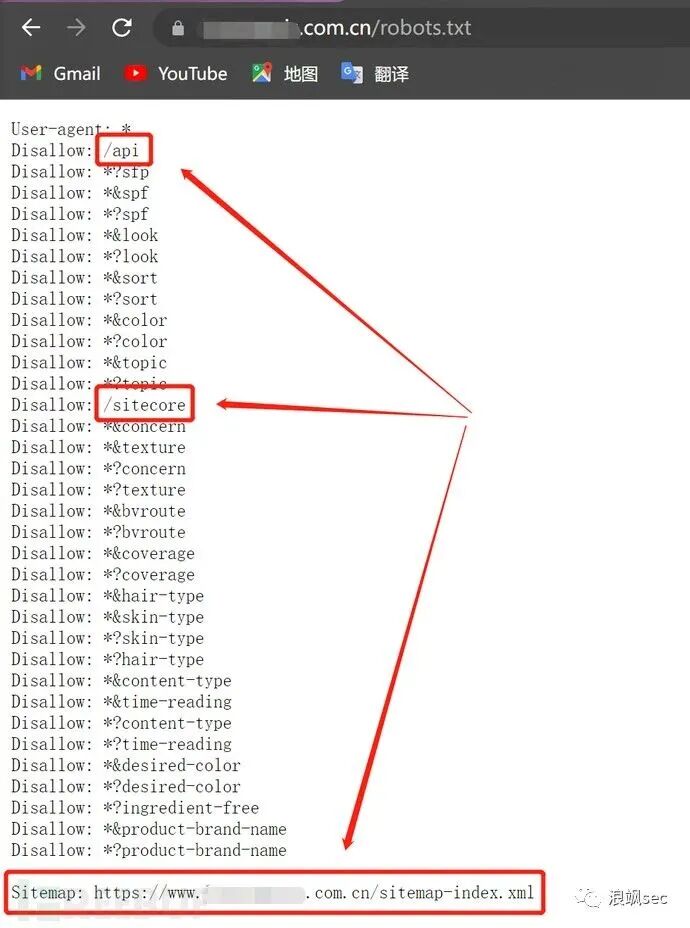 确定CMS为Sitecore,访问 /api 是403,访问Sitemap: