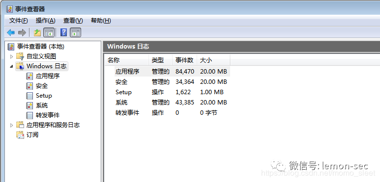 Windows平台下面的溯源就相对容易一些当然主要还是依靠windows的日志一般用 eventvwr命令打开事件查看器。默认分为三类:l应用程序、安全、性统 以evt文件形式存储在%systemroot%\system32\config目录