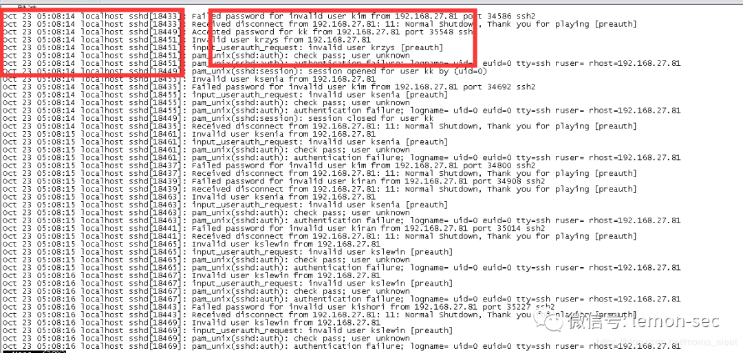 grep,sed,sort,awk几个命令灵活运用、关注Accepted、Failed password 、invalid特殊关键字一般也能轻松发现一些端倪如下: