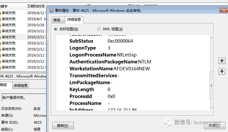 合理使用筛选器往往可以帮助我们更好的排查日志,比如怀疑是暴力破解入侵的筛选事件ID == 4625审核失败的日志,后续通过对时间的排查、以及源IP地址、类型与请求的频率进行分析来判断是否是来源于内网的暴力破解