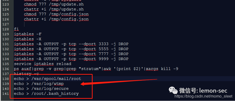 当然了一些脚本执行完了之后往往最后会清除日志比如下面这样的往往就加大了难度,日志被清除了往往就更显得异常了。可以重点看一下还剩下那些日志、或者关注一下网络层面是不是还有其他的安全设备可以在流量层进行溯源分析的。