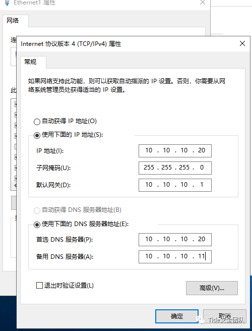 ⾸选DNS为:10.10.10.20(辅域DNS)备⽤DNS为:10.10.10.11(⽗域DNS)