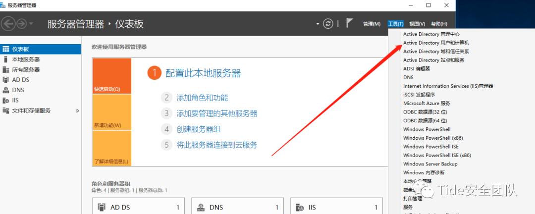 3、重启后来到“服务器管理器”,进行和搭建主域控制器一样的操作