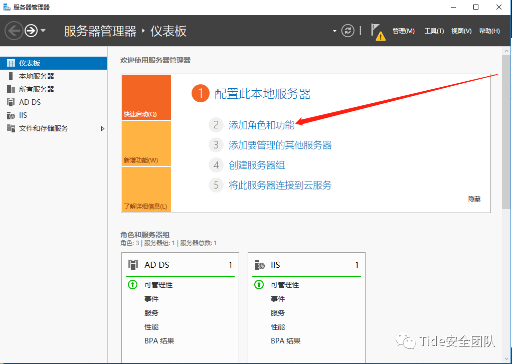 2、“开始”-“服务器管理”-“添加角色和功能”
