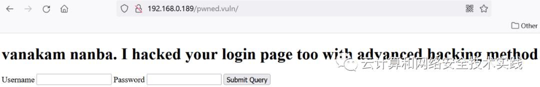 继续浏览器访问http://192.168.0.189/pwned.vuln,
