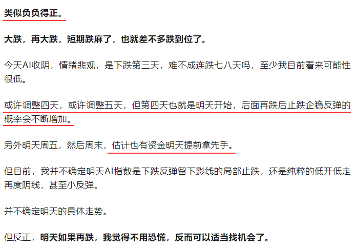 首先,AI指数不会持续大跌,这是预判,途中必然有反弹。