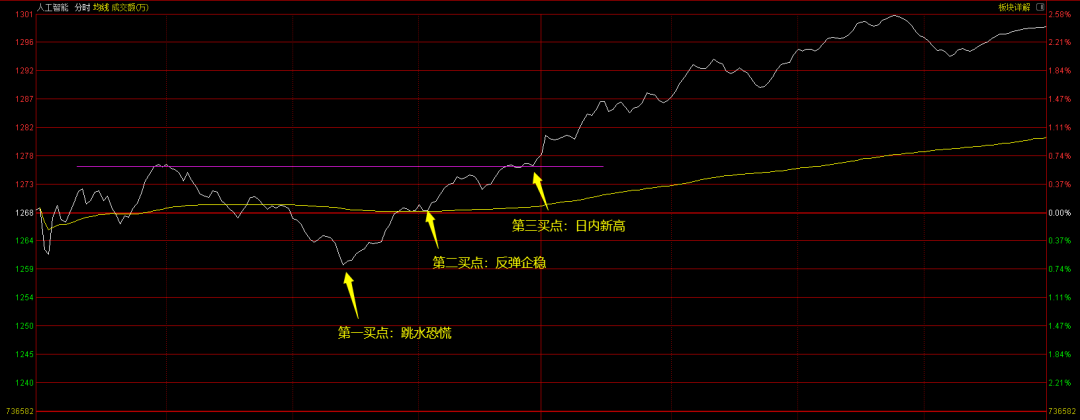 以周五人工智能指数走势为例,我想到的跟随买点有三个。