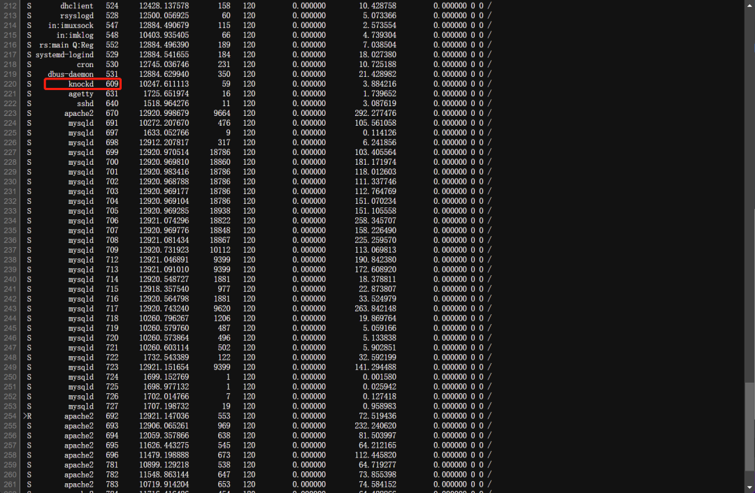 发现一个特殊的进程knockd,需要指定的方式才能访问到端口,也叫端口敲门