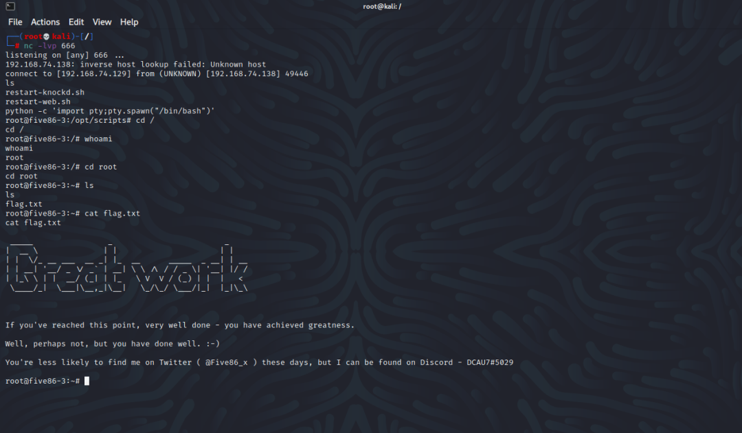 写入nc命令,用sudo权限执行该脚本反弹shell回连到kali上,就可获得到root权限