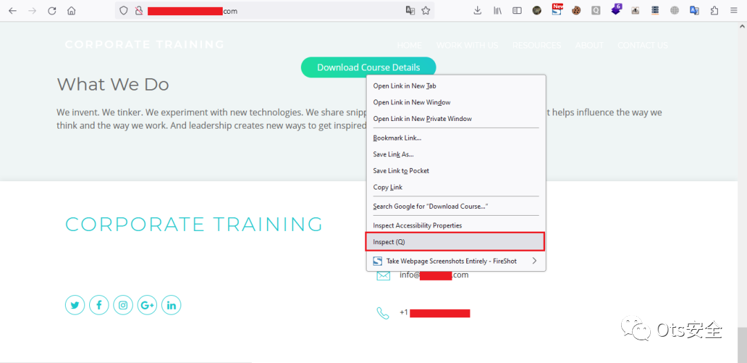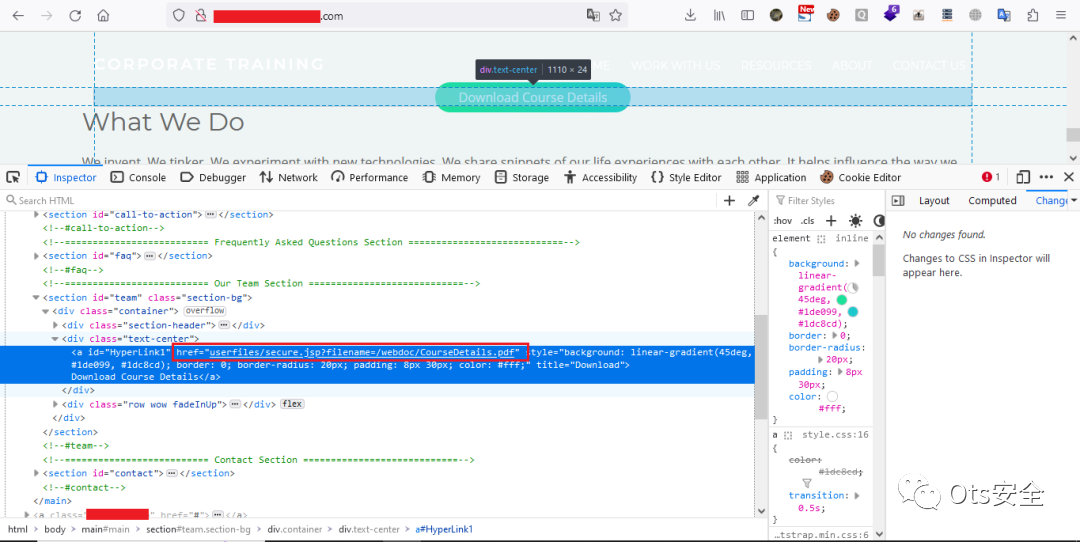 2.我右键单击按钮并单击检查以检查超链接以及它从何处获取文件
