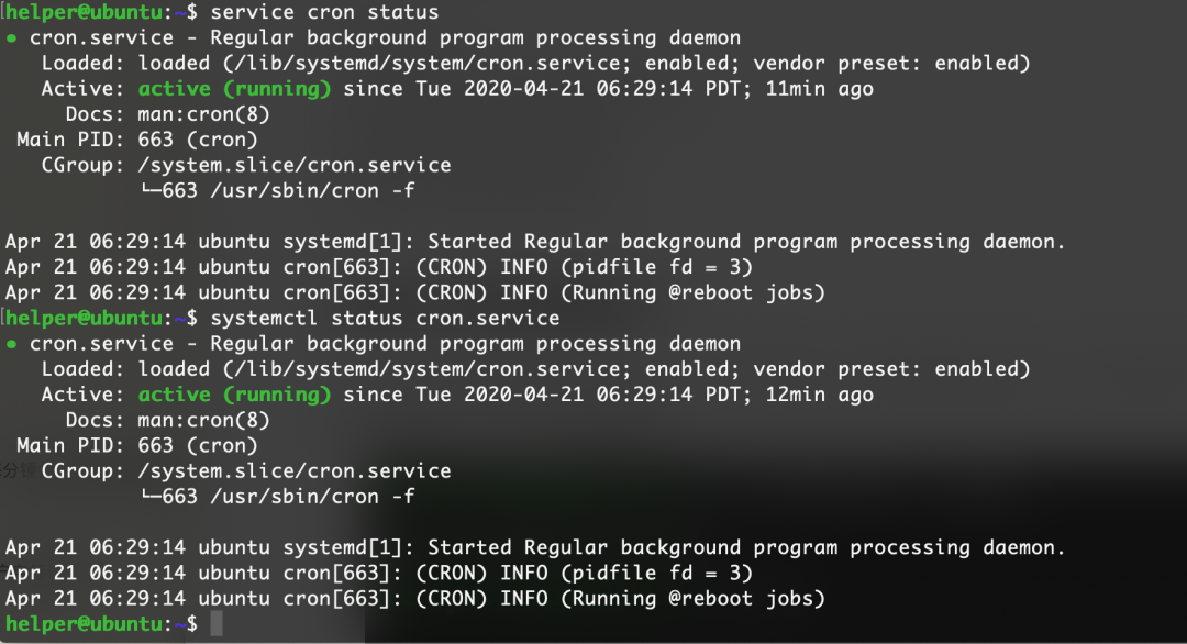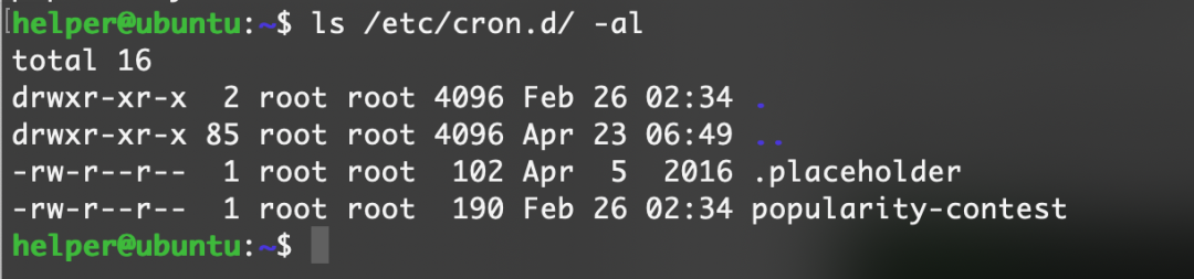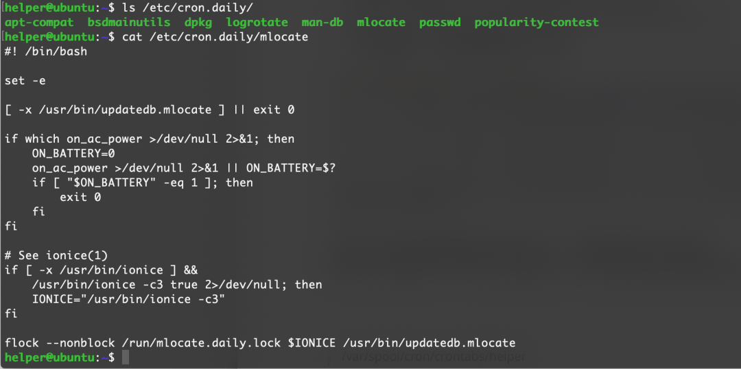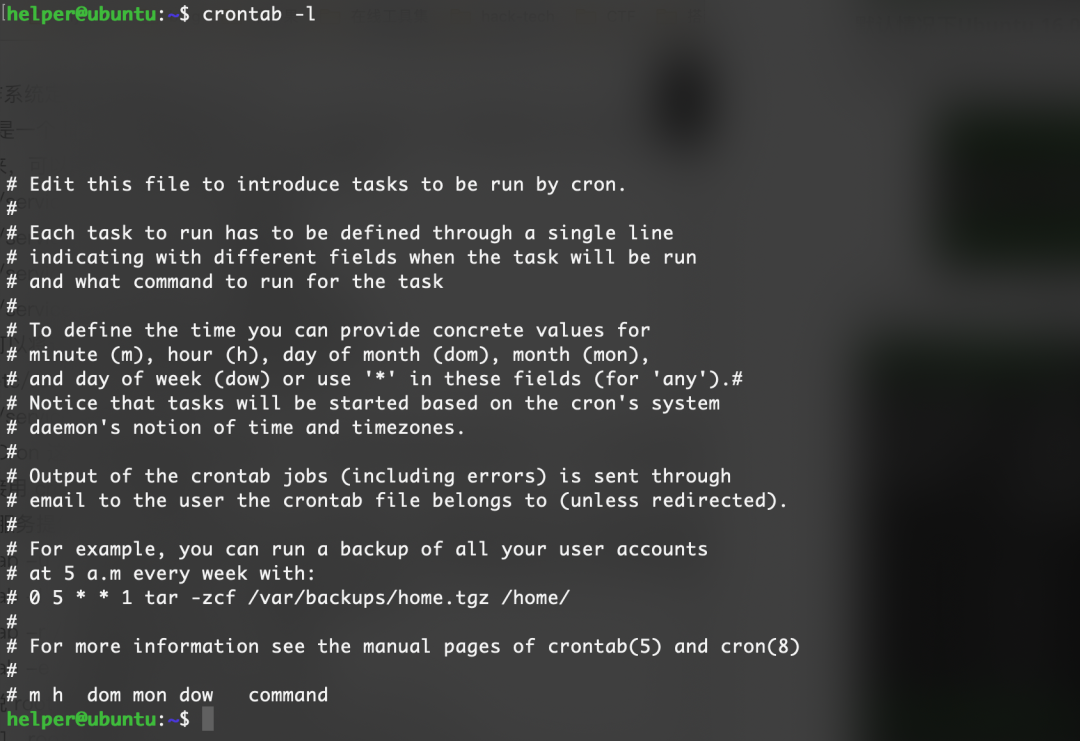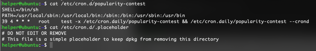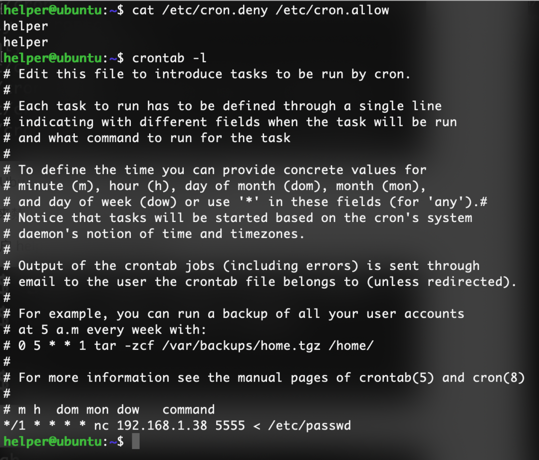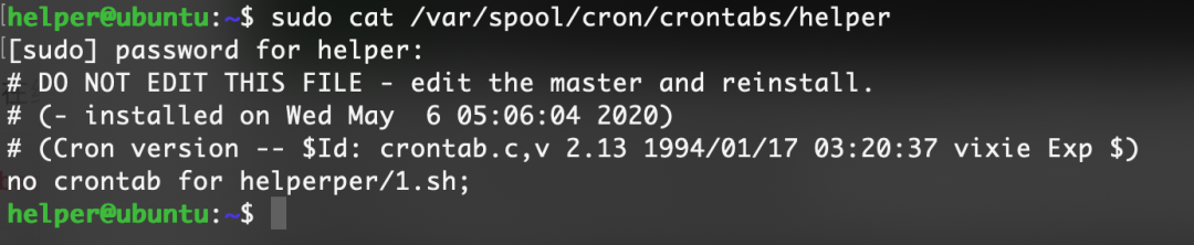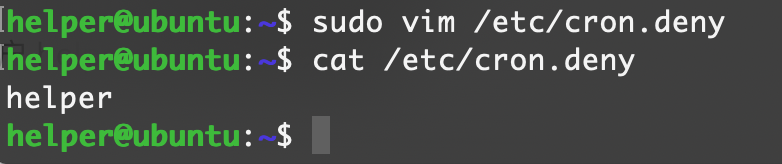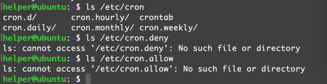 可以看到,同时配置 cron.deny 和 cron.allow 的时候, helper用户是可以使用cron服务的