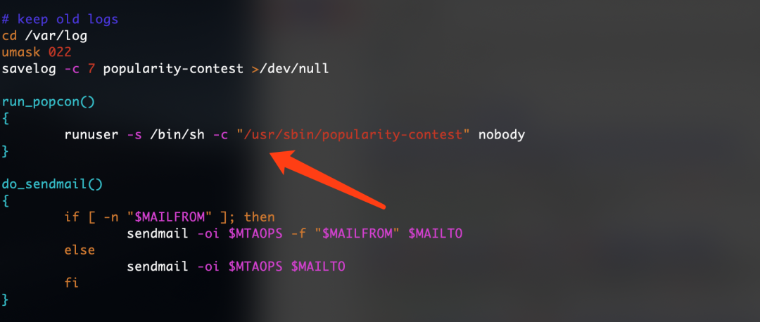 或者我们进行下行劫持,劫持 /usr/sbin/popularity-contest ,我们可以随便修改