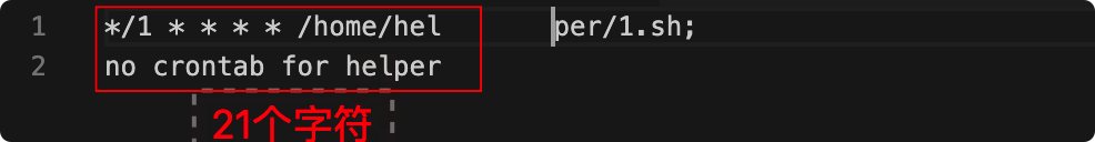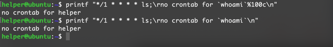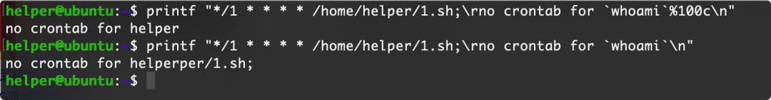 可以看到,输出结果是不一样的,不加 %100c 时候,在 no crontab for helper 后面多了几个字符 per/1.sh;