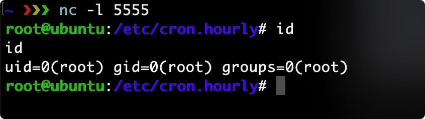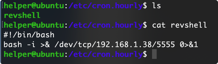 在 /etc/cron.hourly/ 中放置我们的可执行反弹shell文件