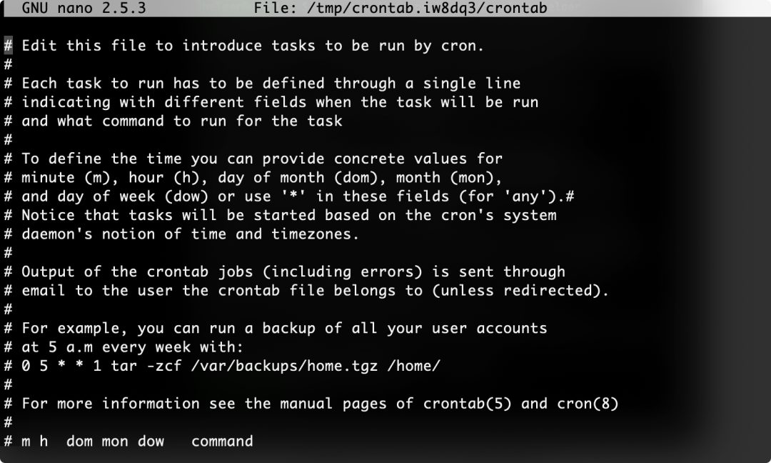 crontab -e 的文件中,可以看到其实人家里面已经给我们说明了,