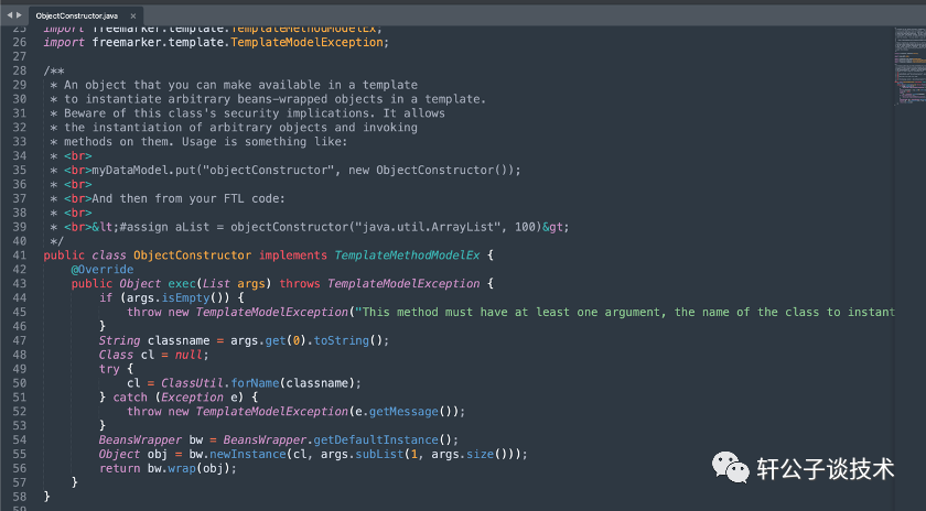 freemarker.template.utility 里有个 ObjectConstructor 类,这个类会把它的参数作为名称构造一个实例化对象。
