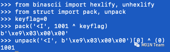 但是这个数字并非是RID的十六进制,而是将RID和keyflag进行异或运算,得到的结果按照小端字节序打包成字节串,其计算和还原的Python代码如下: