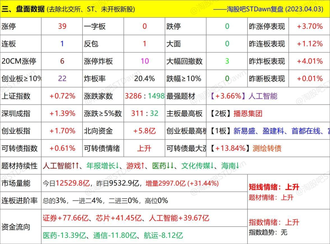4月3日星期一数据、图表复盘