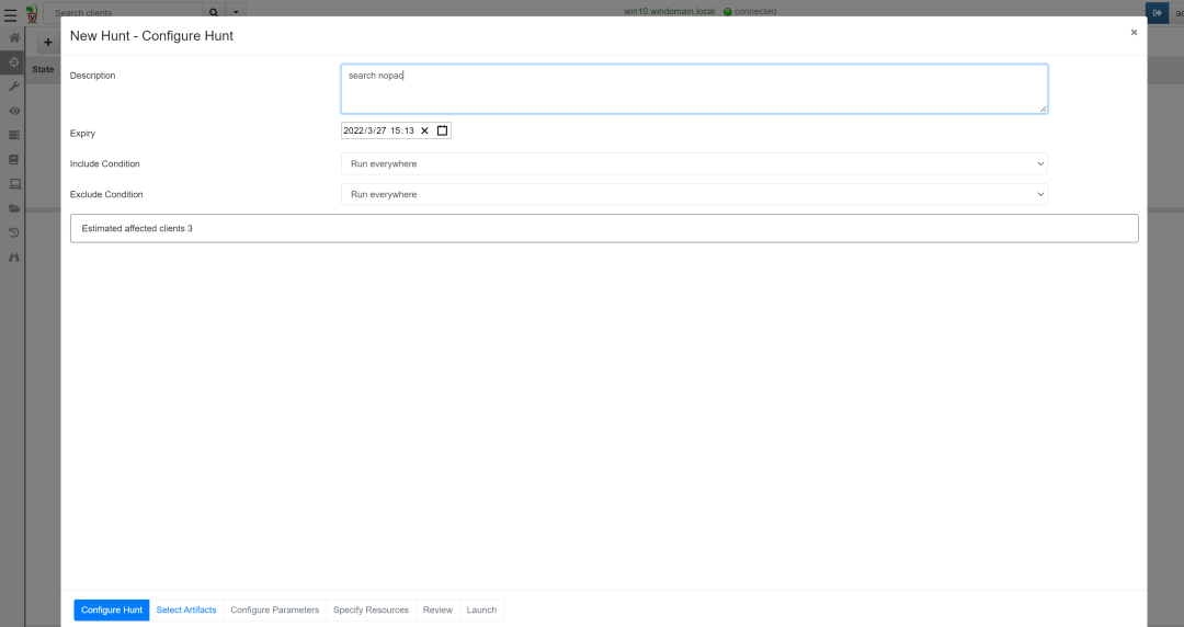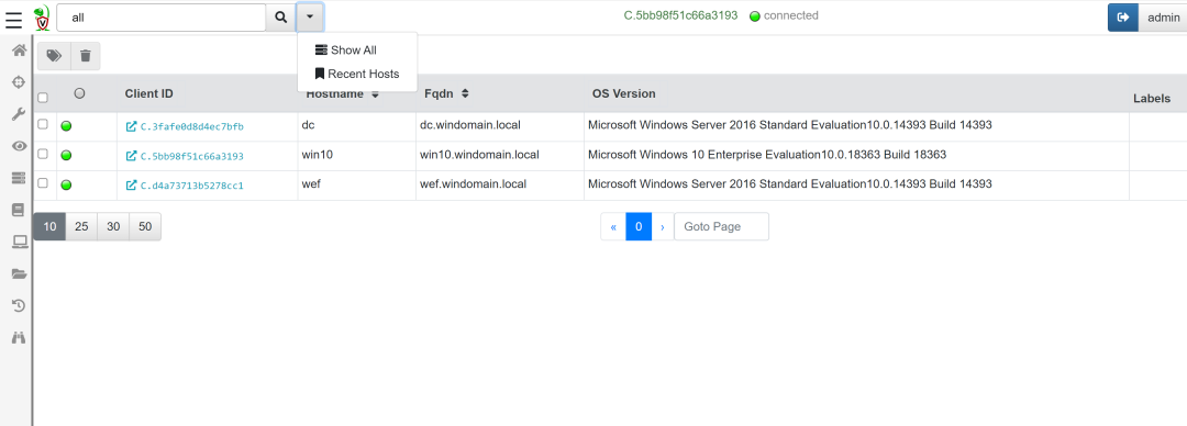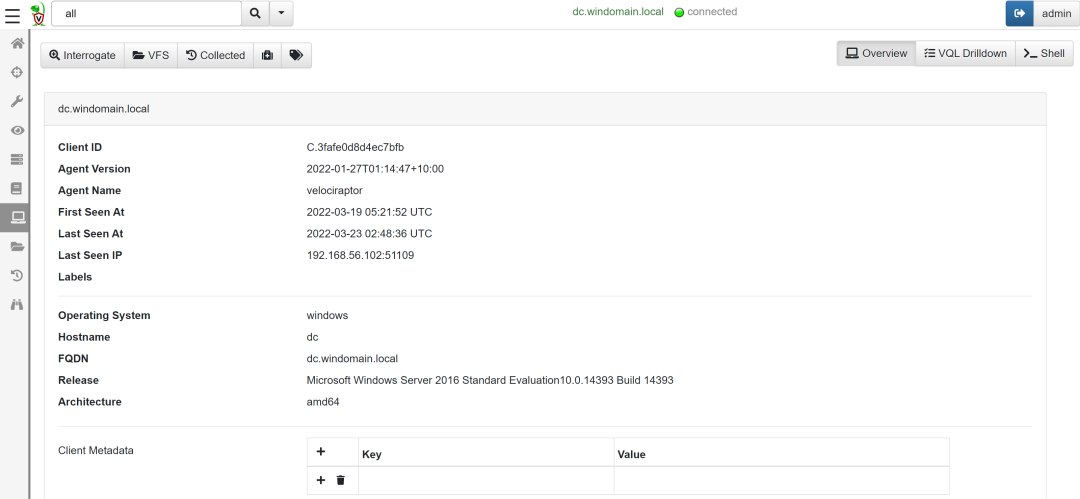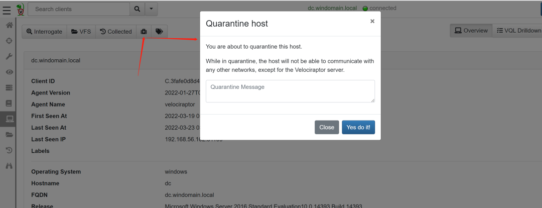 通过Quarantine host可以对该机器进行隔离,隔离之后该机器只能与Velociraptor服务器进行通信