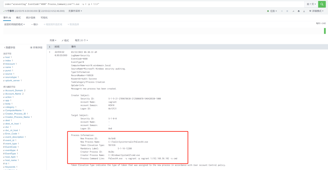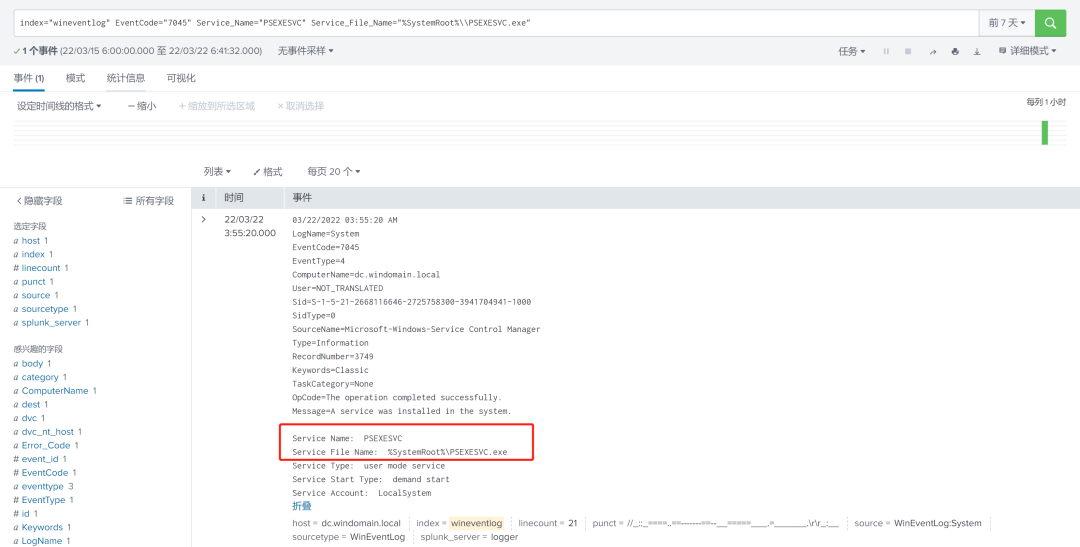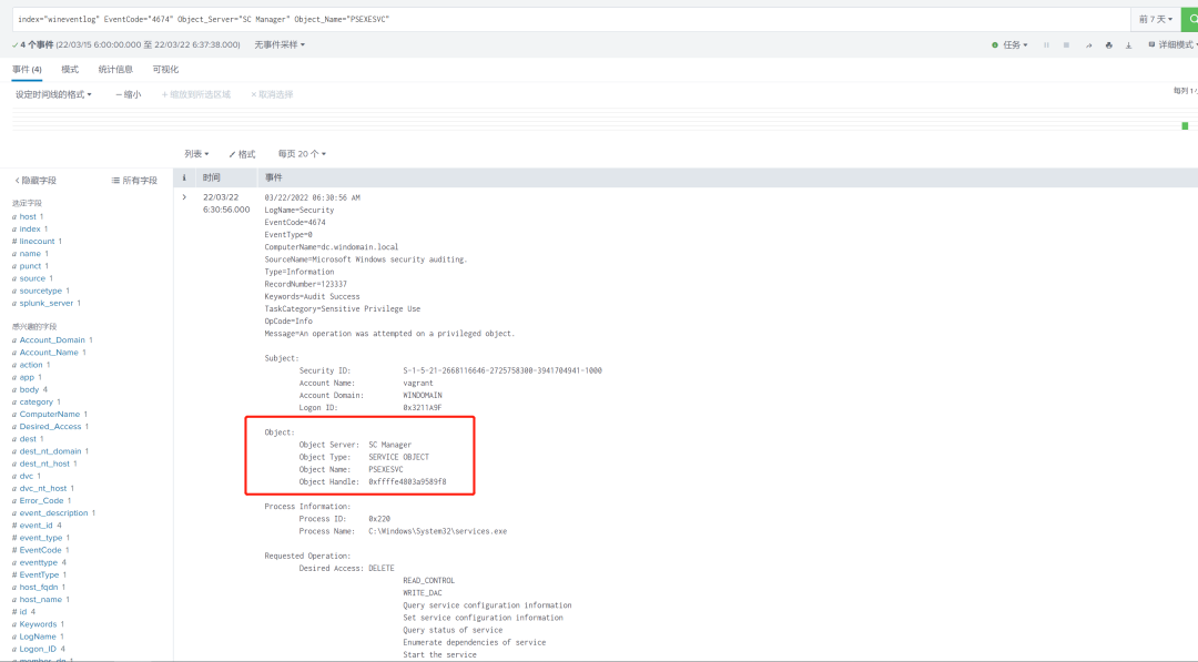 index="wineventlog" EventCode="4674" Object_Server="SC Manager" Object_Name="PSEXESVC"index="wineventlog" EventCode="7045" Service_Name="PSEXESVC" Service_File_Name="%SystemRoot%\\PSEXESVC.exe"从源机器数据进行查询