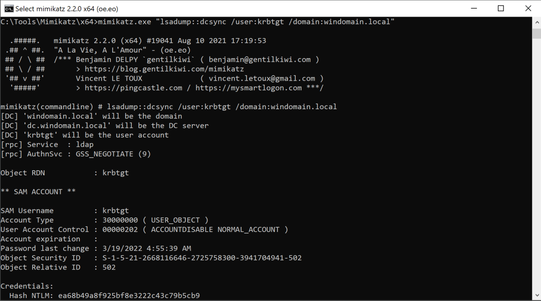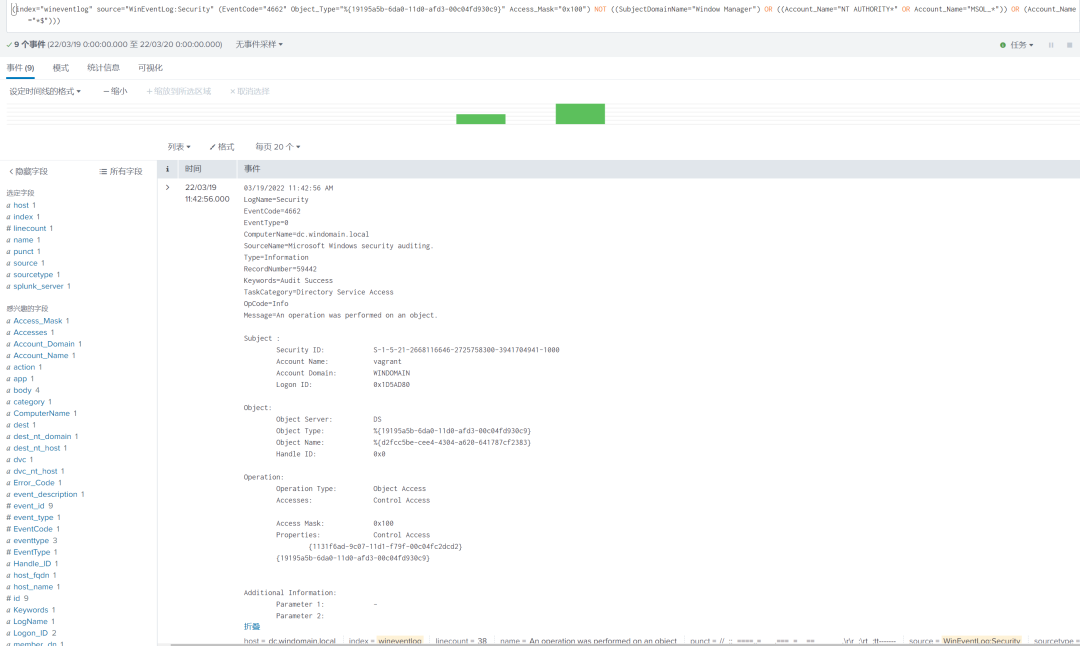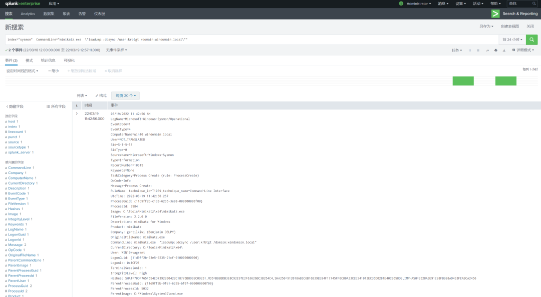 index="sysmon" CommandLine="mimikatz.exe \"lsadump::dcsync /user:krbtgt /domain:windomain.local\""从DC数据进行检测