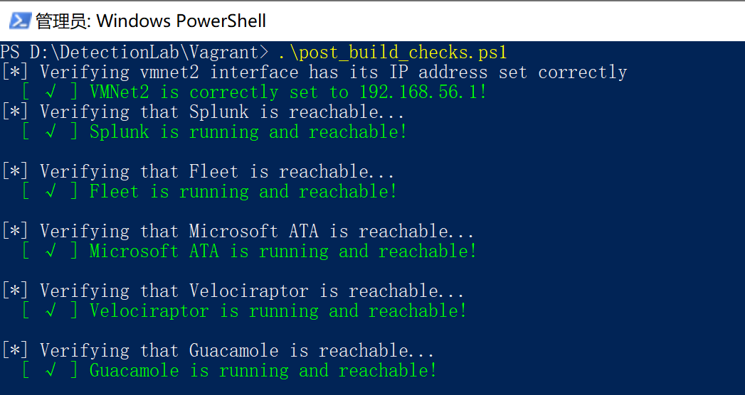post_build_checks.ps1如图上所示,则说明环境部署成功