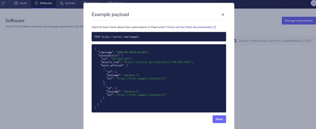 该平台可以对机器所安装的软件进行收集,当开启漏洞自动化时,所安装软件发现CVE漏洞时,则会向指定的网址发送webhook请求