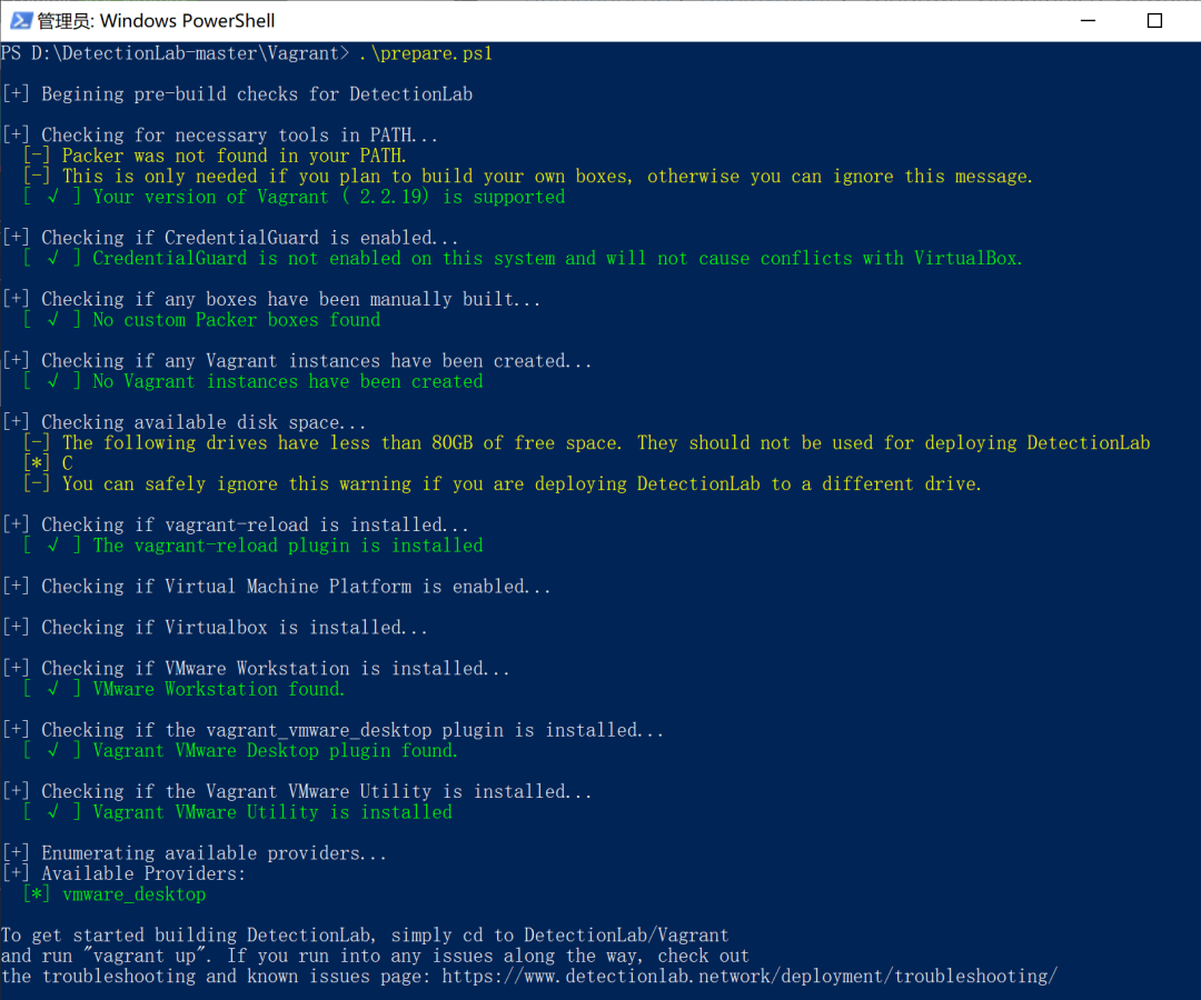 git clone https://github.com/clong/DetectionLab.git检查是否符合安装条件