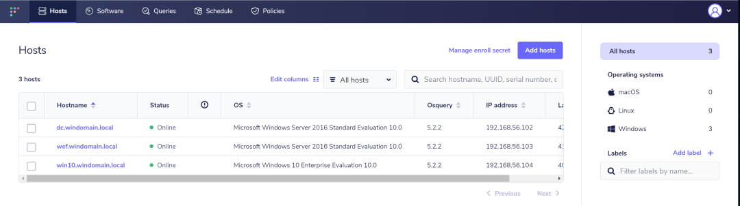 基于osquery的开源设备管理平台,可以在平台设置策略及定时查询等