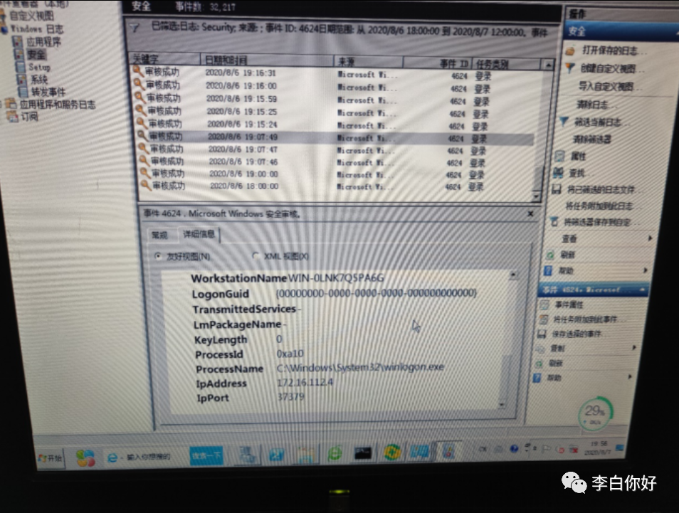 8月7日8:30-9:00间多次登录失败,并非攻击者更改密码所致,实际为登录用户名输入错误所致(正确用户名为administrator用户使用用户名为Lenovo,推测为用户远程登录时未修改登录默认用户名信息,导致用户名为个人pc用户名)。根据日志该系统最后一次远程桌面登录为2020年5月6日,与系统使用方描述一致。