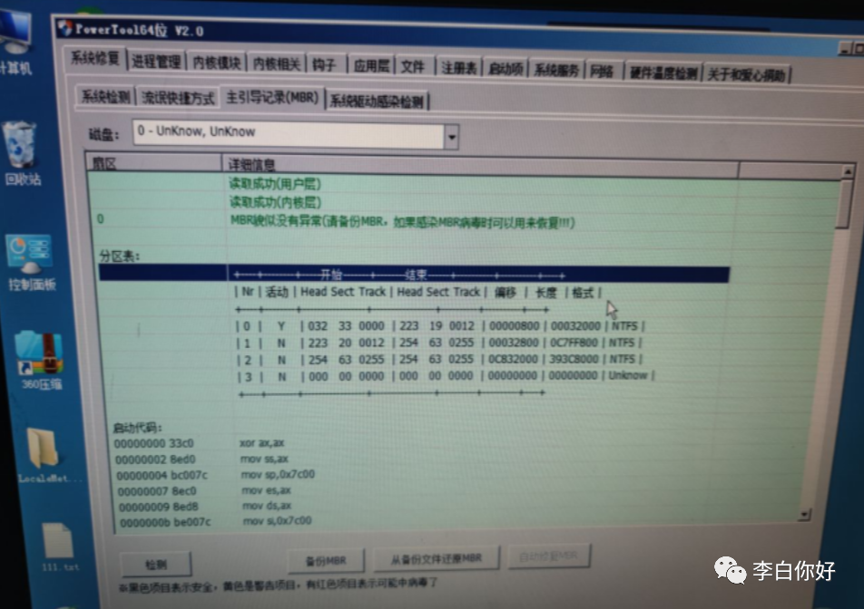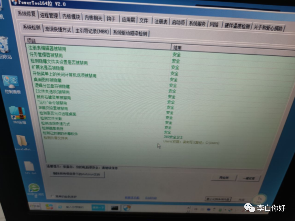 2、对系统计划任务、进程运行、主引导区记录等多个项目进行完整检查: