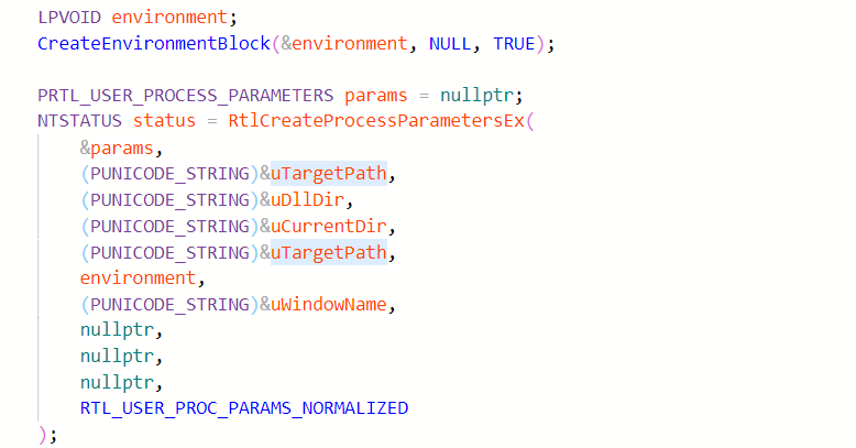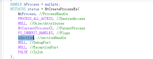通过获得该section传入NtCreateProcess()创建进程,然后修改该进程的ProcessParameters和Environment