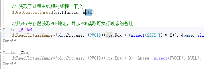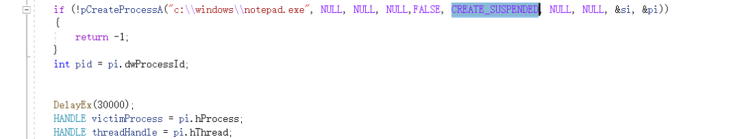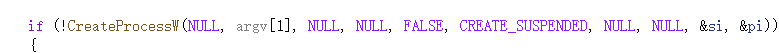 而另一种方式(early bird)是先以挂起的方式CREATE_SUSPENDED创建进程,获得所创建进程的主线程句柄: