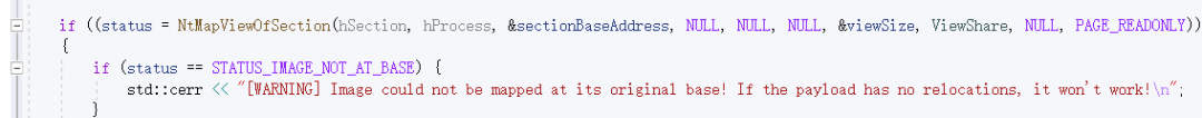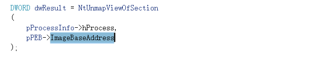 接着使用NtUnmapViewOfSection清空原有进程的section,这步不是必须的: